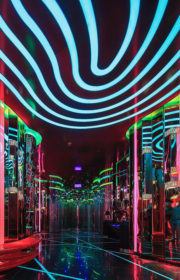 个性十足的重工硬装空间点缀飘逸的炫彩元素,为新时代的娱乐贵族量身定制高质感欢愉场所。